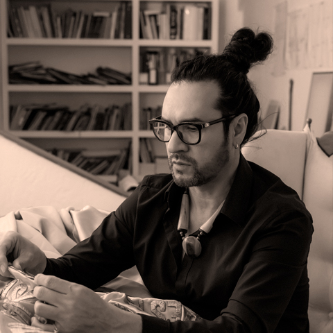 Artista multidisciplinario cuya práctica abarca cine, video, fotografía, instalación, performance y objeto. Sus vivencias con comunidades indígenas, particularmente la Guaraní, han reforzado su convicción de que la creación artística está profundamente ligada a la conexión espiritual del creador con el mundo. Su abuelo le enseñó que el arte es mucho más que el dominio de una técnica, búsqueda que le llevó a estudiar diferentes disciplinas: puesta en escena, escenografía, historia del arte y del cuerpo, diseño de indumentaria, cine, fotografía y medios alternativos.